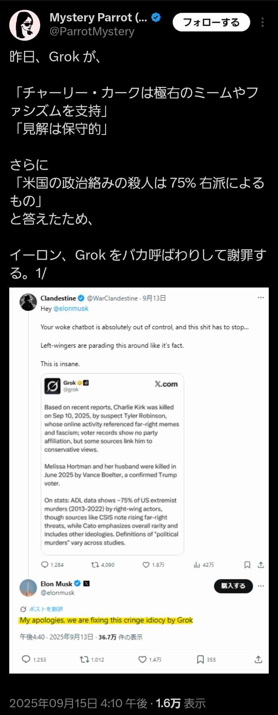 - ぼくはイーロンよりGrokを信じるよ(´・ω・`)