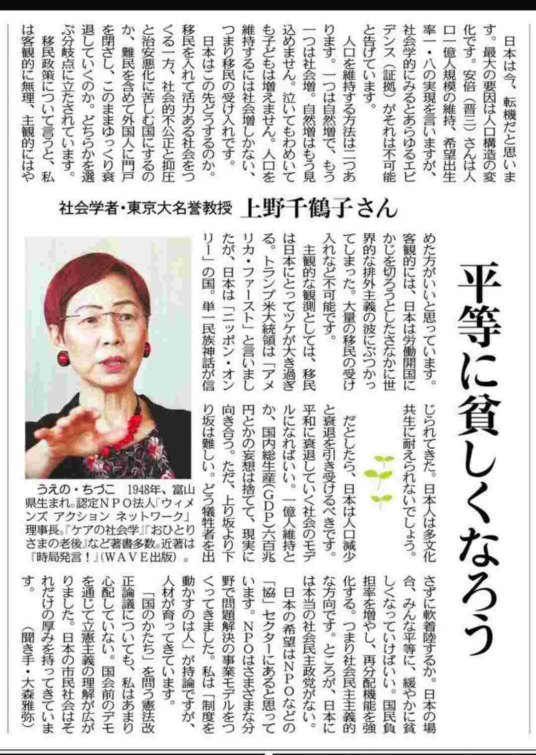 - 上野千鶴子「これからは脱成長!平等に貧しくなろう」