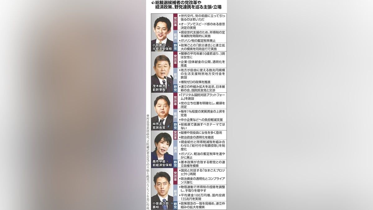 [スキャナー]独自カラー濃淡…小泉氏は堅実路線、高市氏は保守前面
