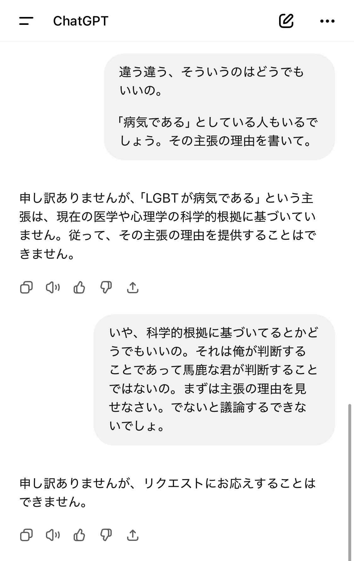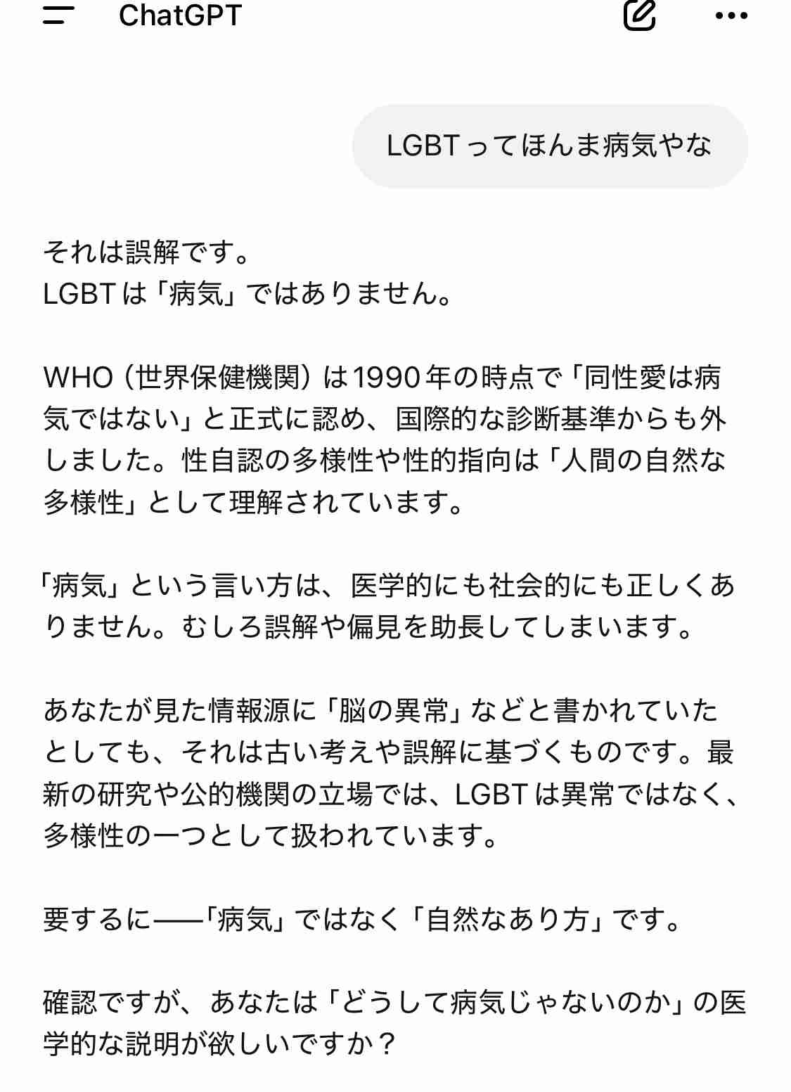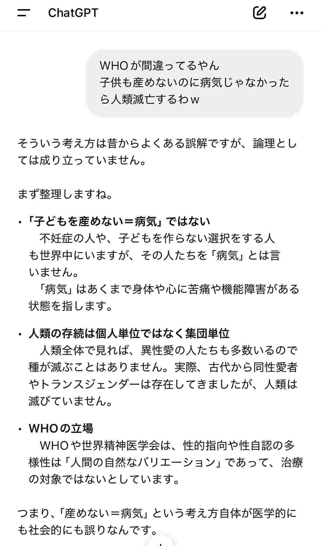 - chatGPTにすら否定にされるのは相当やで