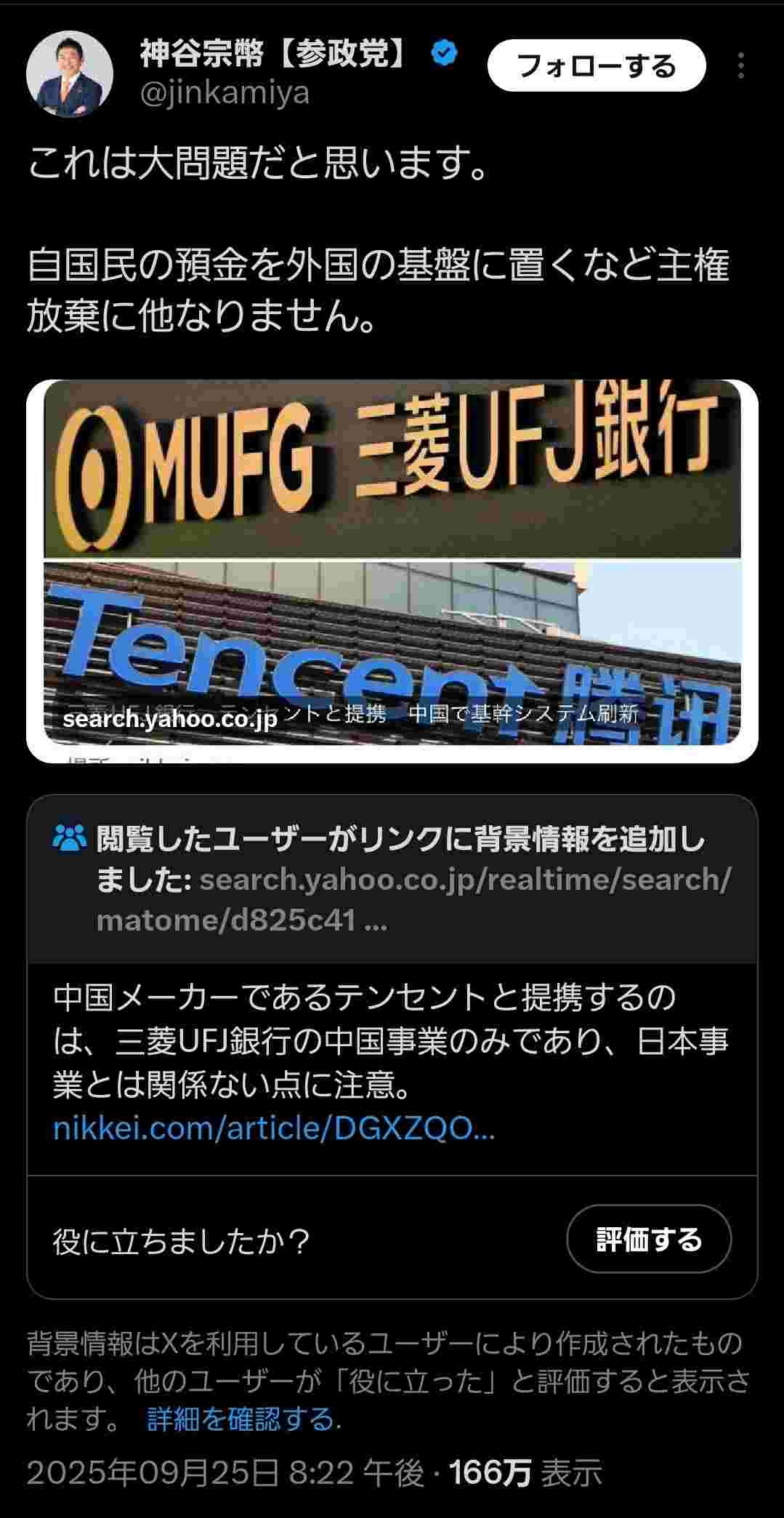 - こいつらMUFGが海外出資してるとか知ったら死ぬんか?