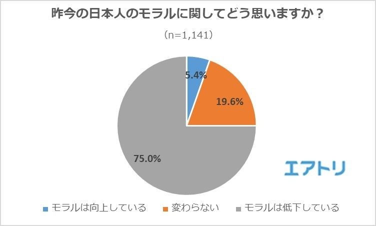 4人に3人が「日本人のモラル」の低下を実感・・・