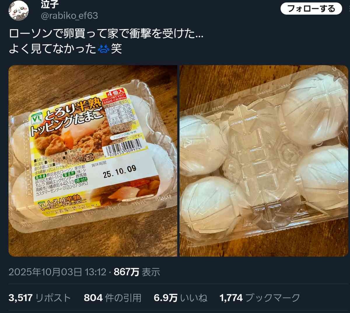 - 生卵を買ったと思ったら半熟玉子だったという話だったと思ってたわこれ