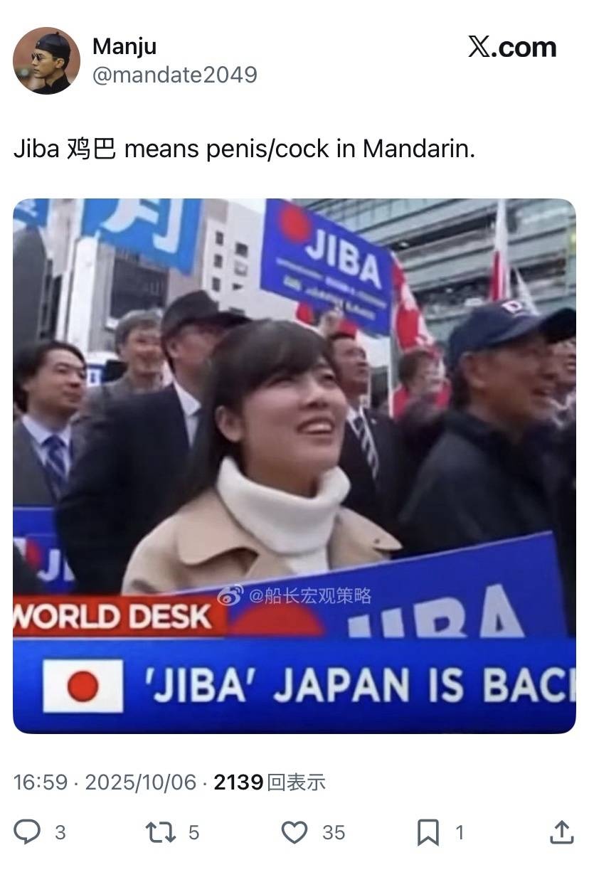 まあ国際感覚とかそういうの意識してないんだろうから仕方ないのかもしれないけどさ - 5 : 2025/10/07(火) 18:50:53.11 ID:wILaRrnBM
