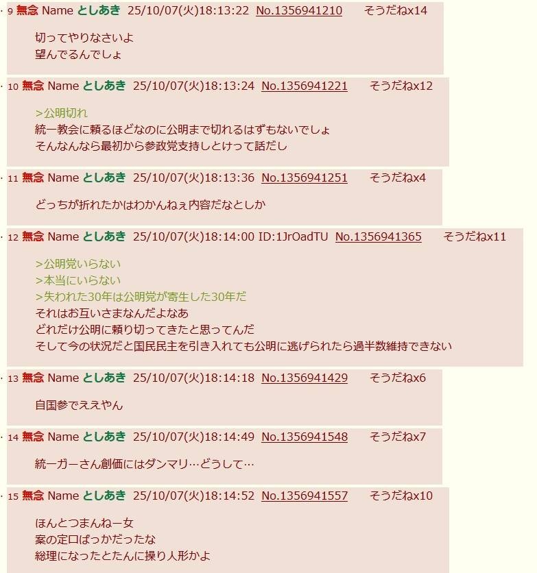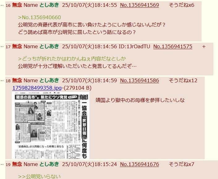 - 公明党は連立を解消して高市内閣成立を阻止しろよ