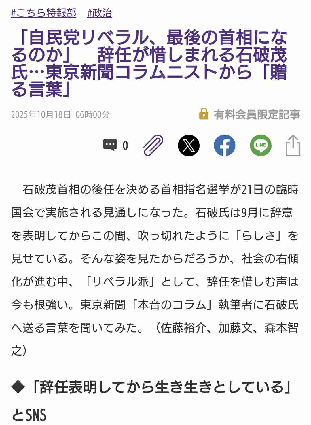 - 東京新聞やその系列が在任期間中に石破の仕事褒めてた記憶も無いけどな