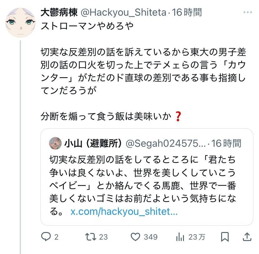 - 根底にあるのは間違いなく差別だよな