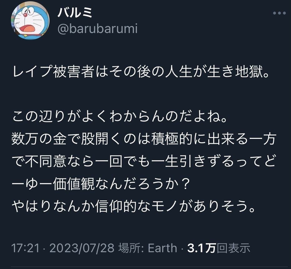 - レイプはアカンけど後出し不同意は割と懐疑的