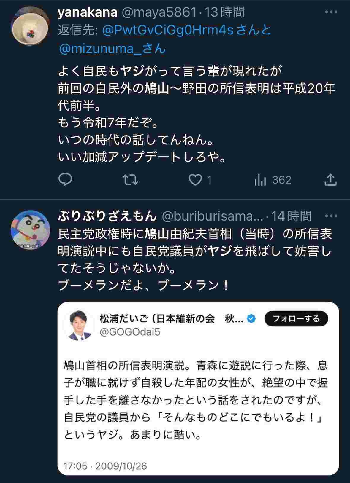 吉村もいい加減野次はやめた方がなんて偉そうに言ってたけど維新こそ統制もとれず野次りそう - 56 : 2025/10/25(土) 10:41:05.27 ID:gn8sDdfB0