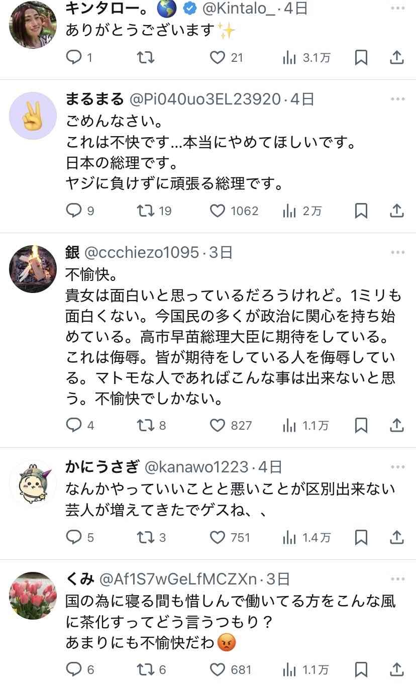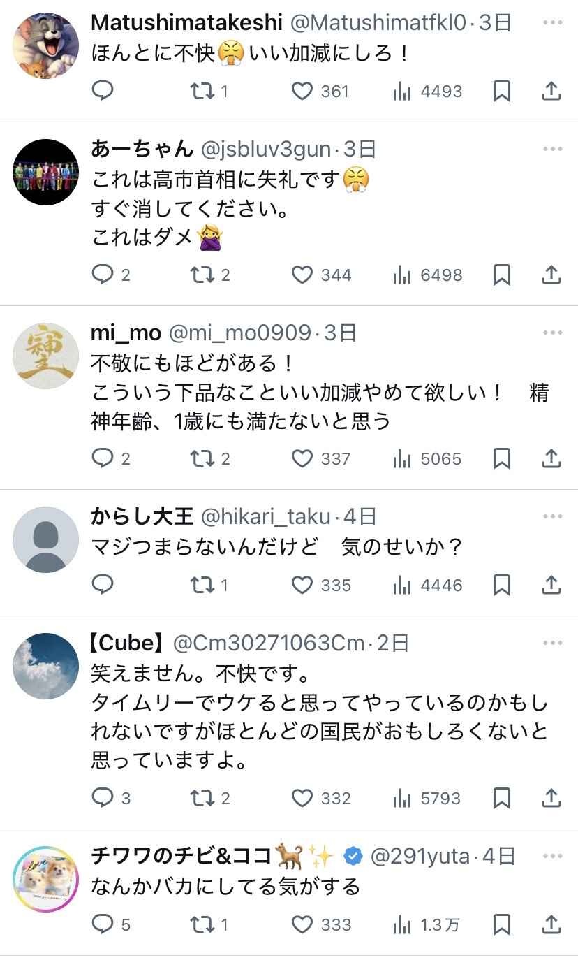 - 野党のヤジとかクソみたいなモノマネのおかげで高市の支持率が急上昇してる感はあるけどな