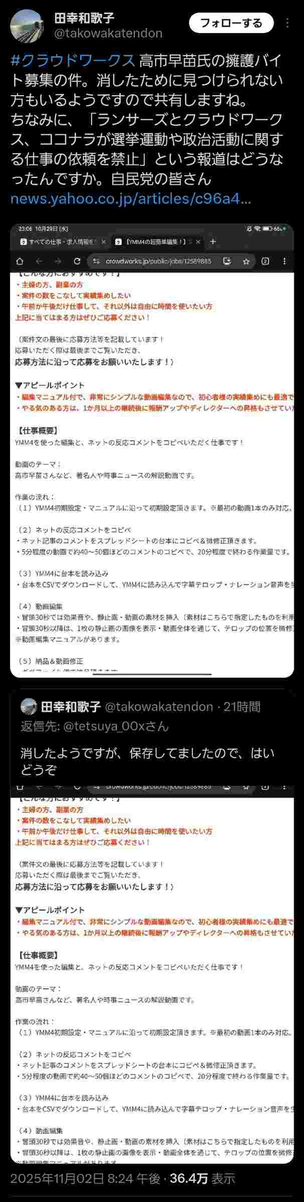 - これって高市支持者が勝手にやってるって体で募集してんのかな