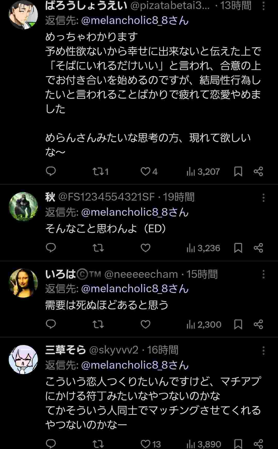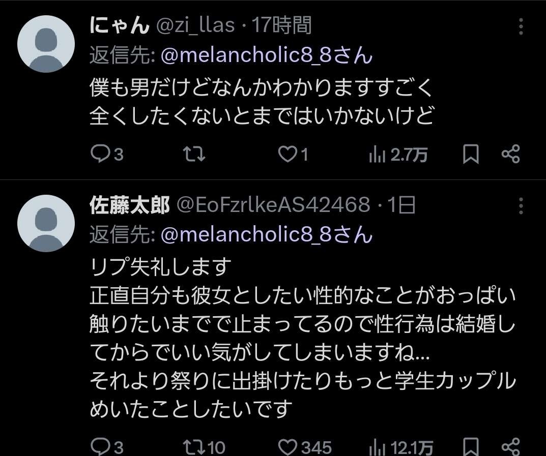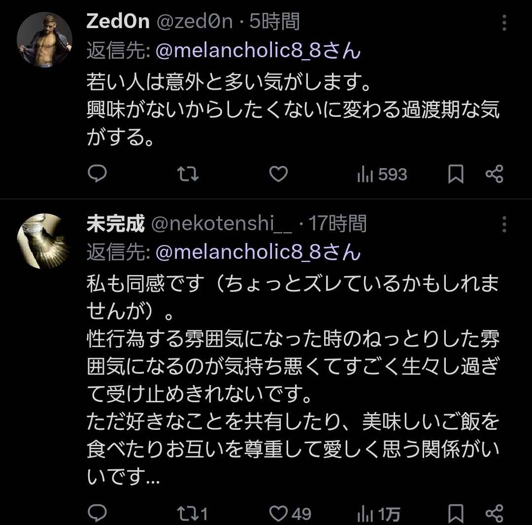 - 長い間付き合ってそういう感覚になるなら理解も出来るけどハナからセクロス求めないなんて有り得ないわ