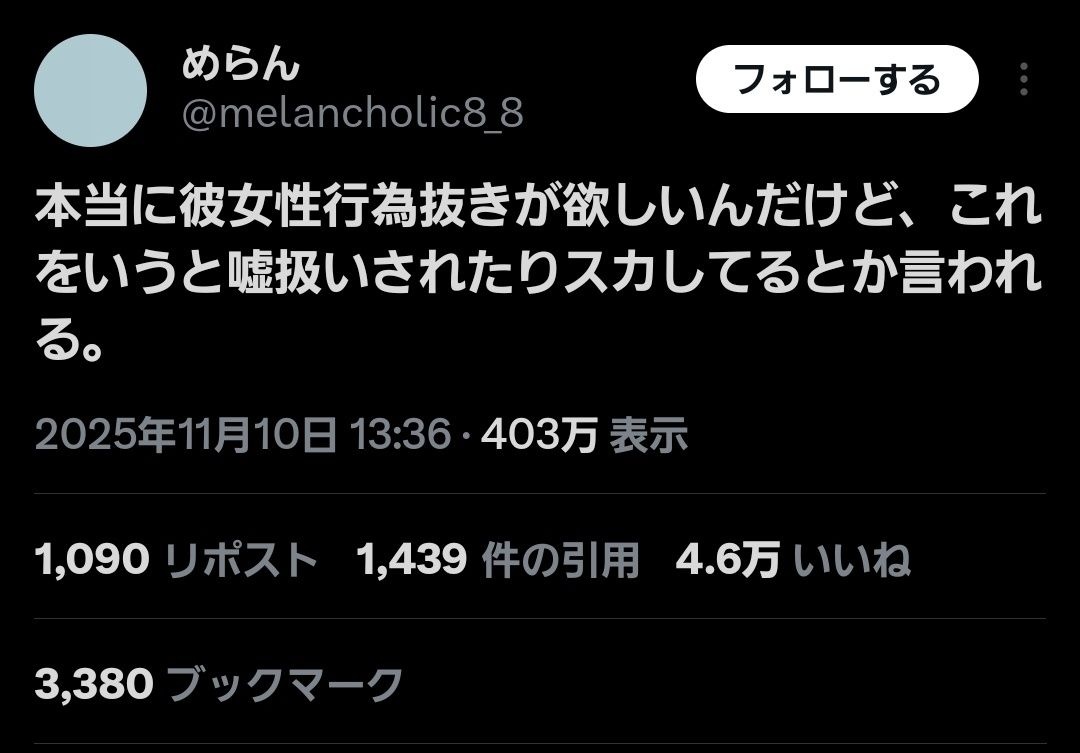 そして飽きるのも男あるあるだけどな - 10 : 2025/11/12(水) 12:52:20.47 ID:IUCM79ei0