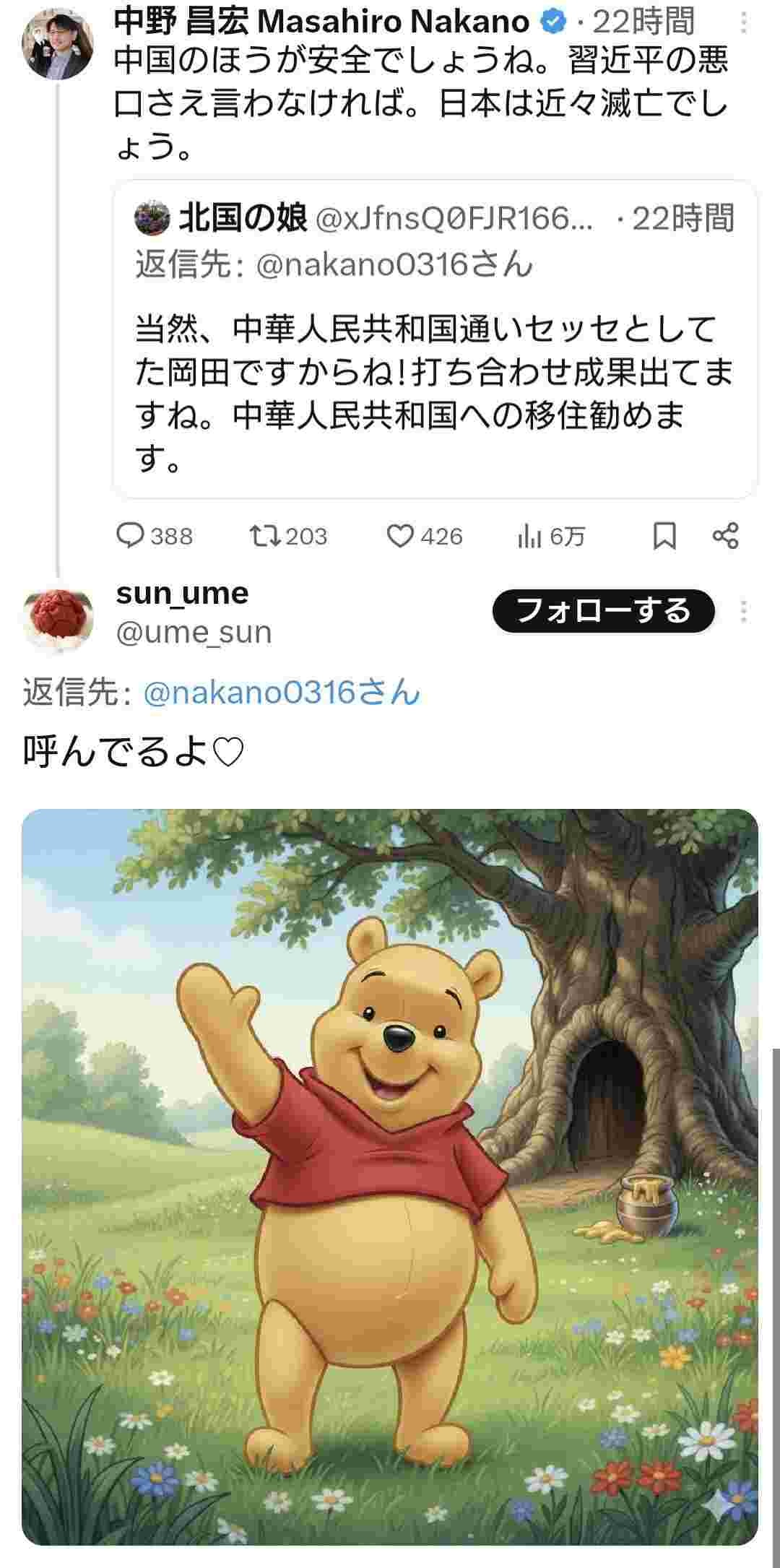 プーさんの悪口を言うのみならず、政権批判を行う事すらはばかられるだろうに - 25 : 2025/11/19(水) 17:40:43.82 ID:5O2hPB8M0