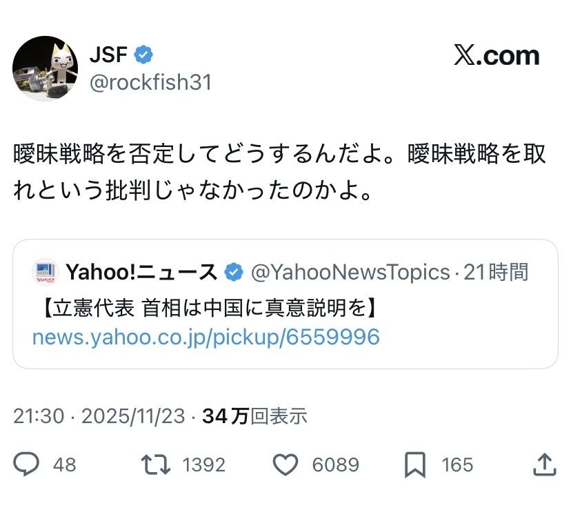 手遅れになった後に曖昧戦略は使えねーだろ - 55 : 2025/11/24(月) 16:41:09.53 ID:ohR7AlZp0