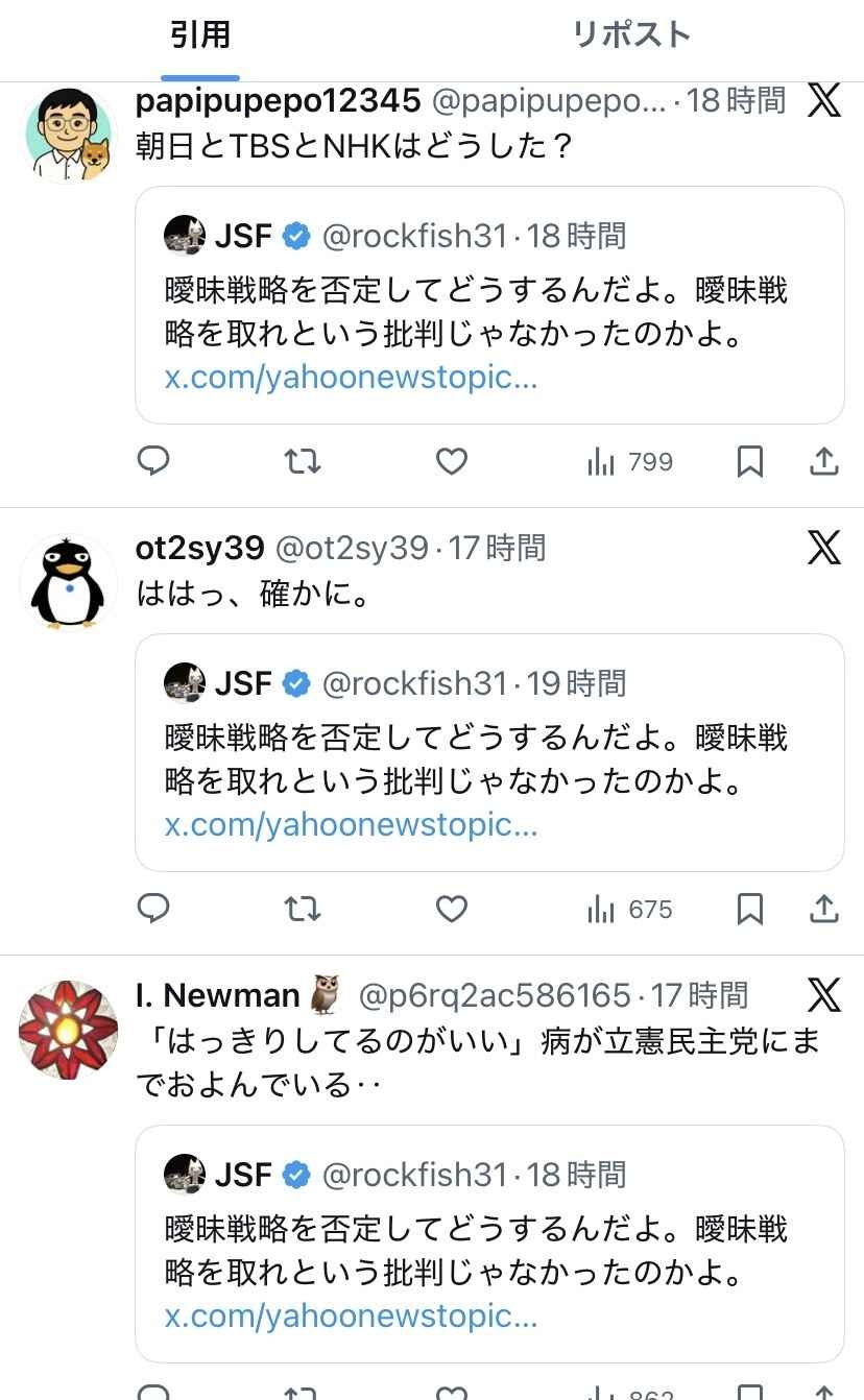 - そもそも立憲は曖昧戦略も時の政府の判断で戦争に巻き込まれかねないと批判してるけどな