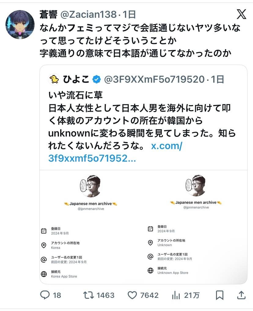 - 自称日本人で日本叩きしていた垢がことごとく韓国人だった…