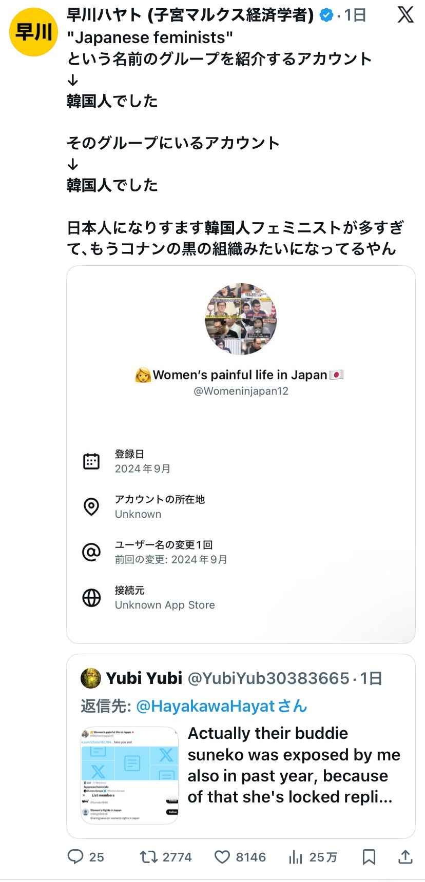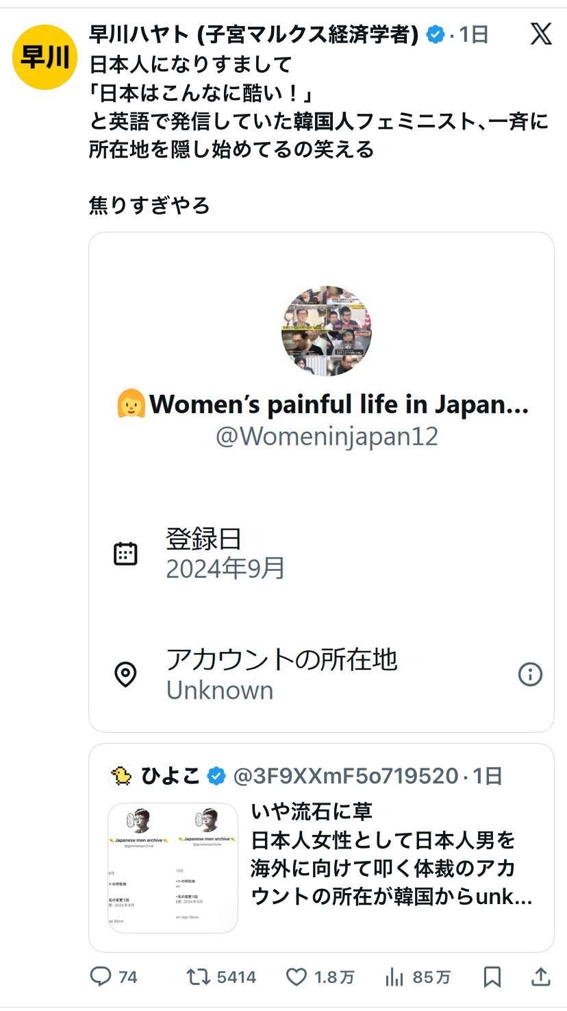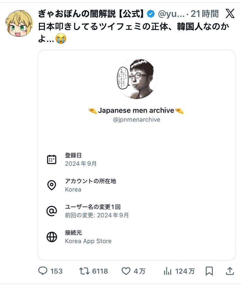 過激な男女対立煽りや日本叩き垢は大体韓国人バレしてる - 28 : 2025/11/24(月) 17:13:10.787 ID:fHKy3x44Q