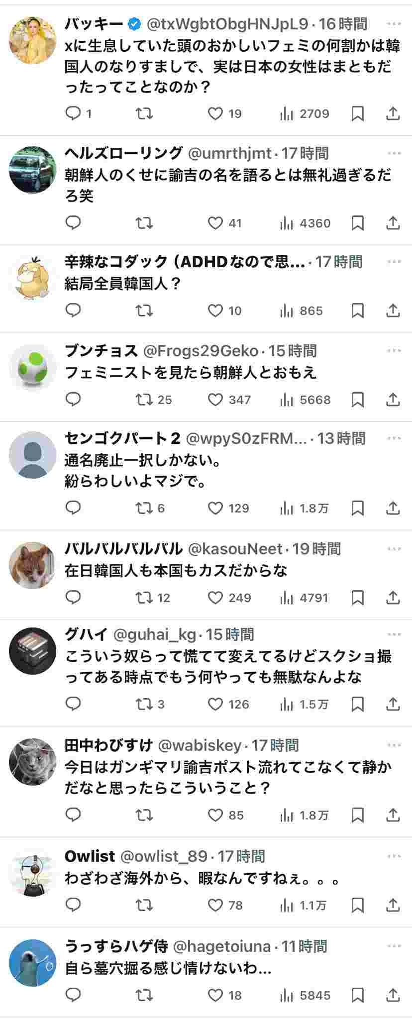 - 日本人女性はまともでXに生息してるフェミのほとんどは韓国人だったのでは🤔という流れになる