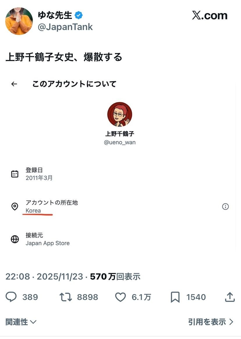 今のところほぼ全てのフェミ垢が韓国人バレしてる - 8 : 2025/11/24(月) 17:00:55.759 ID:ogPbV6Z72