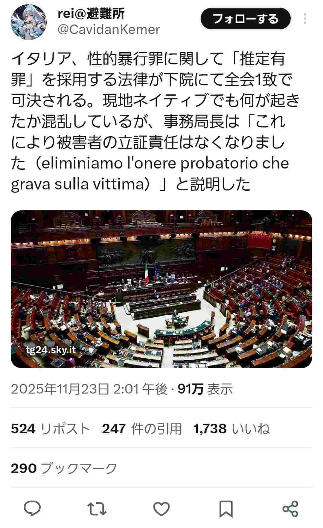 イタリアの場合は無罪だよって弁護側が証拠を提示していくことになる - 283 : 2025/11/24(月) 18:43:22.850 ID:5PvF5Pa9Z