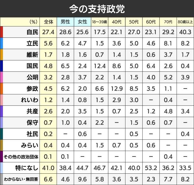 - というか立憲支持あがって国民と参政ががた落ちしてんの笑う