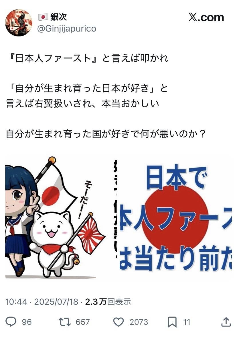 - 日本が好きなのに日本の平和を脅かす高市みたいなアホをなぜ支持するの?
