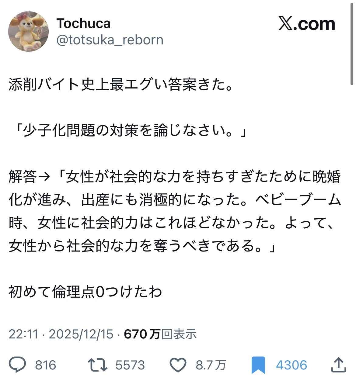 他に問題が出るから不正解なんだろうがそんなの正解ないからみんな困ってるんだろうに - 41 : 2025/12/16(火) 11:44:41.14 ID:eJ7lt51Y0