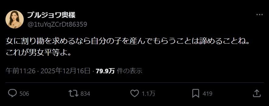 これが男女平等よ。 - 2 : 2025/12/18(木) 07:46:37.517 ID:GoxcZQ9vA