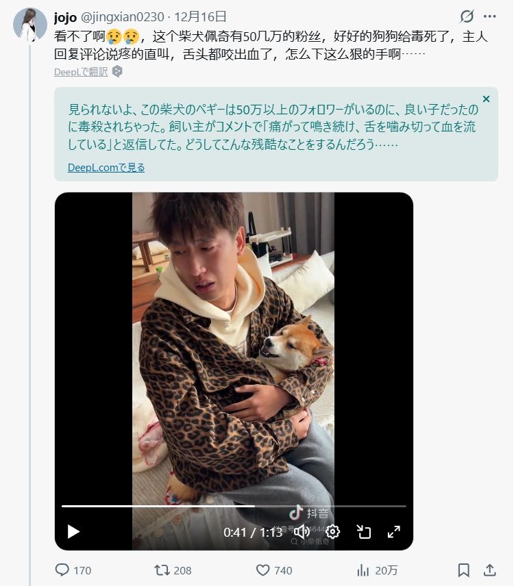 柴犬をしばきまくる中国人の動画が流れてきた。胸糞だった - 14 : 2025/12/18(木) 21:39:58.683 ID:xesZuq0O0