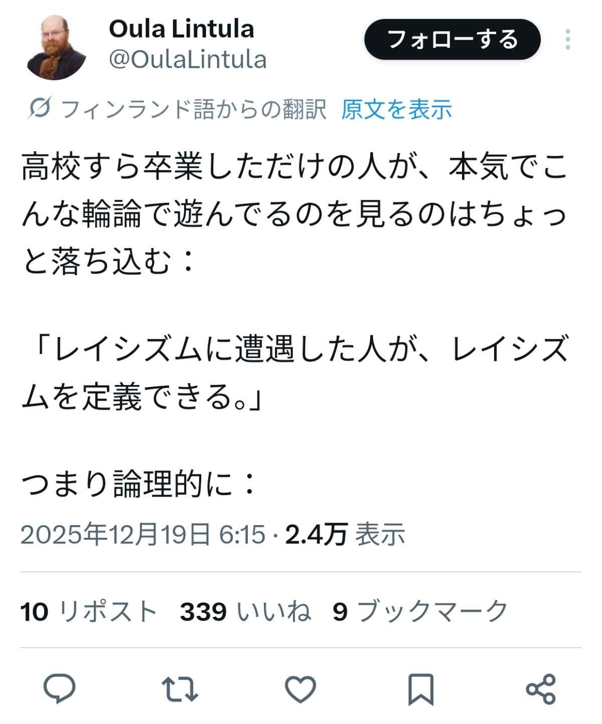 ネトウヨキモすぎるわフィンランド人に同情する - 25 : 2025/12/20(土) 15:18:00.341 ID:MoiSlnxe0