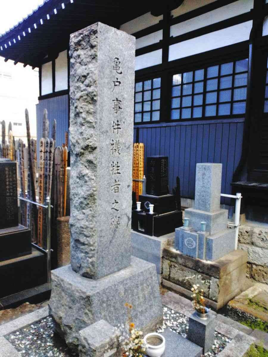 関東大震災直後の虐殺事件では日本人の無政府主義者や社会主義者も、官憲に殺害されています=写真は労働運動活動家10人が殺害された「亀戸事件」犠牲者の碑、東京都江東区。「非国民」は戦後、死語となりましたが、近年ではヘイトスピーチ(差別扇動表現)を繰り返す集団が路上で連呼しています。