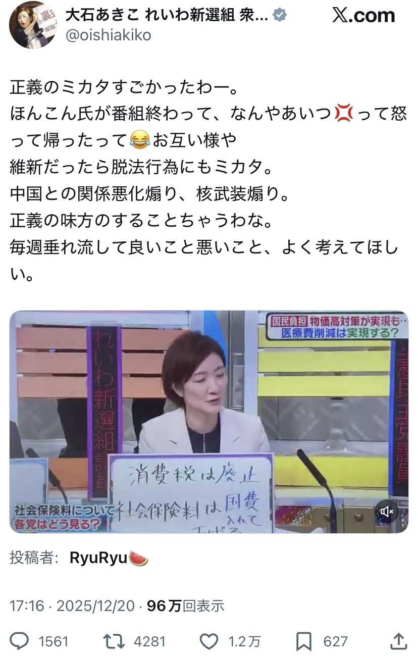綺麗な不記載 大石あきこさんやんww - 50 : 2025/12/21(日) 18:48:42.37 ID:ESGmsgwvM