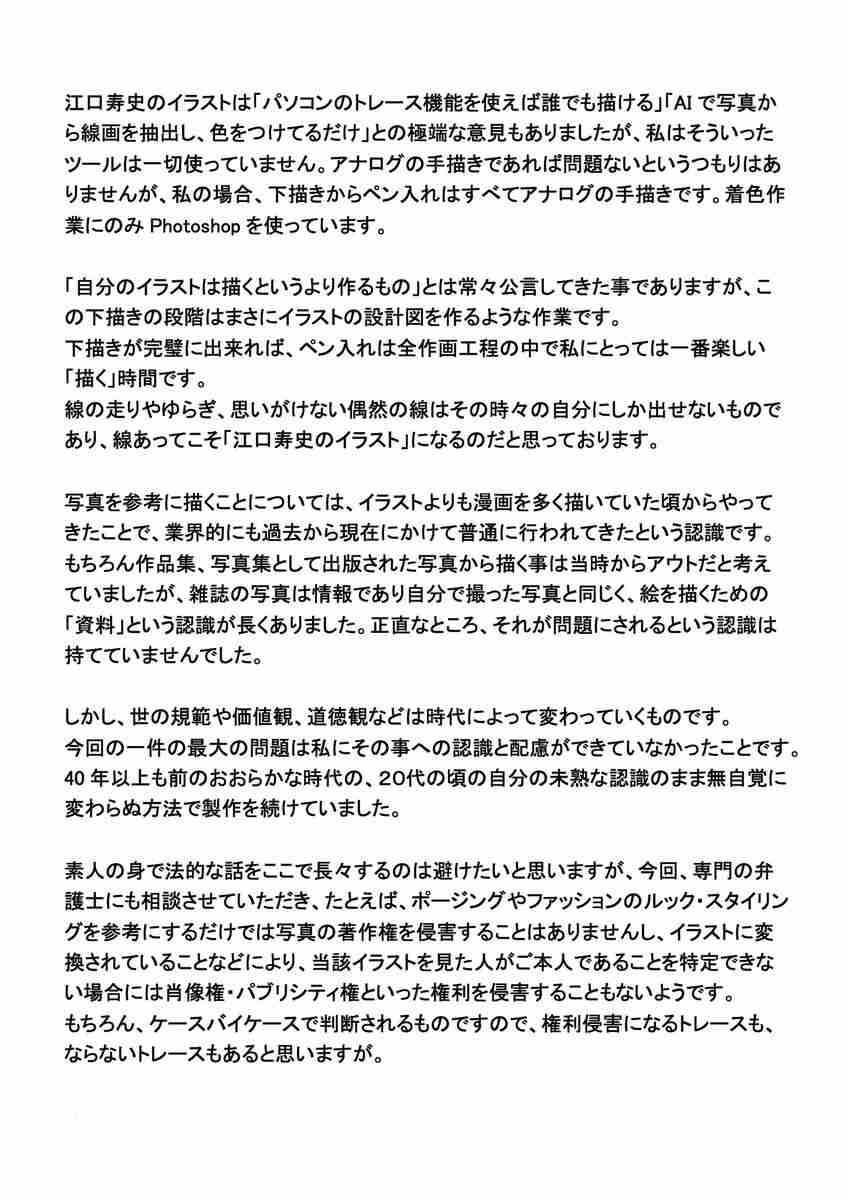 - ポージングやファッションを参考にするだけでは著作権の侵害とは言えないのは分かるが江口寿史のケースは参考にしただけと見なせるものなんだろうか