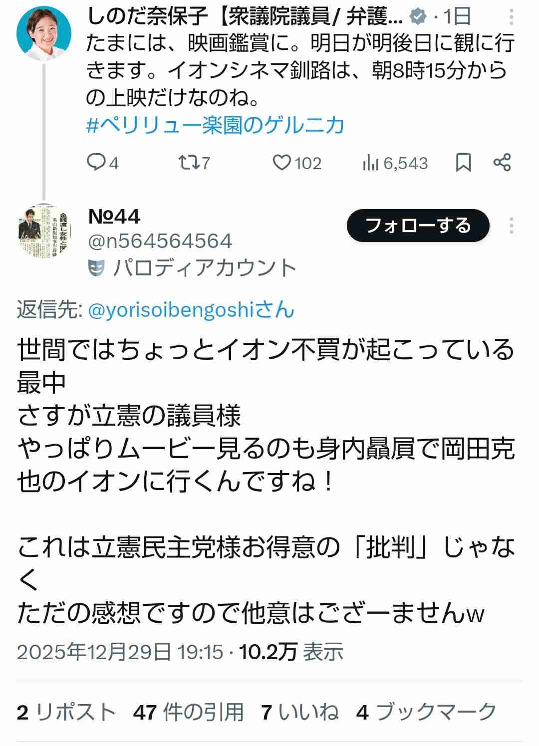 立憲議員がイオンシネマを利用しようとしただけで身内贔屓になるのか