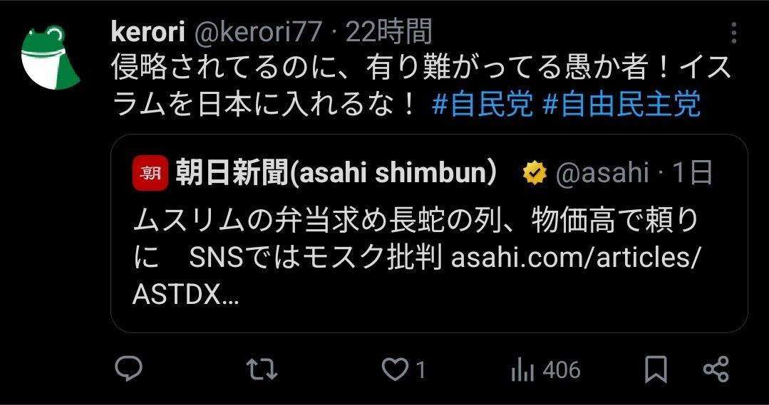- なおネットのムスリム叩きは過去最高