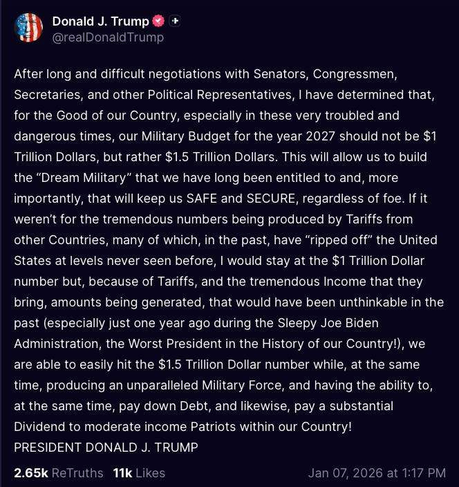 誰もが不安を覚えるはずの疑問を投げかけている。総額1.5兆ドル規模とも言われる「理想化された巨大軍事力」は、いったい何によって賄われるのか、という点だ。しかも、そのタイミングはあまりにも分かりやすい。現政権が人類史上最大級の軍事予算を発表するのと同時に、ベネズエラの石油収入を実質的に掌握し、米国企業との排他的な購入契約を押し付け、海軍による封鎖で従わせ、さらにカリブ海で他国のエネルギー輸送を阻止している。