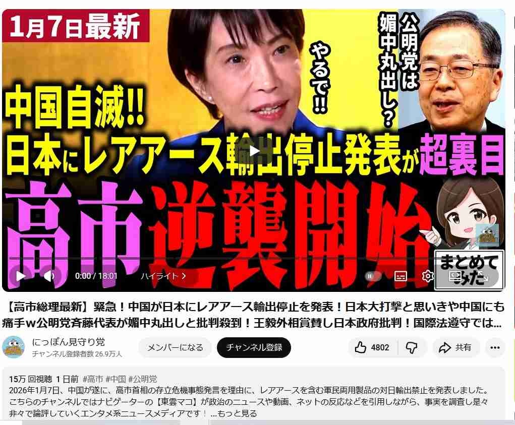 沖ノ鳥島に世界最大のレアアース鉱山があるから何の問題も無い - 18 : 2026/01/08(木) 09:40:05.90 ID:ey1oML8w0