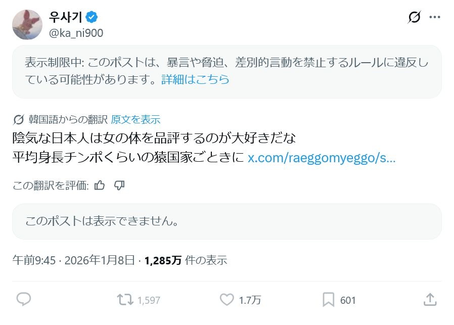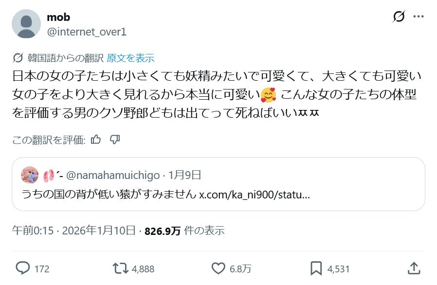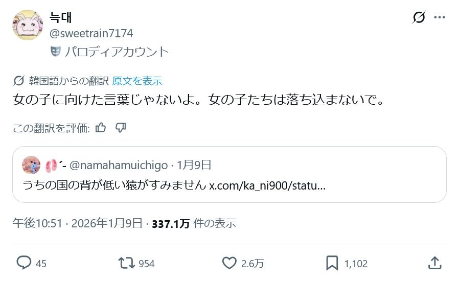 韓国は関係ない暴言でもいい文化っぽい - 10 : 2026/01/10(土) 23:11:32.504 ID:3Fh7IPOMv