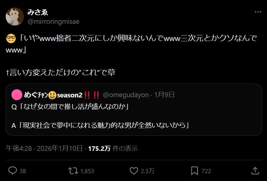 女オタクの自己認識がこれなのほんまおもろい - 22 : 2026/01/11(日) 12:34:01.656 ID:SfHxwgLgd