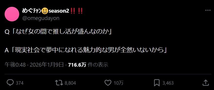 推し活に向ける情熱は恋人に向けるべきだろ - 31 : 2026/01/11(日) 12:36:02.266 ID:/VRSVJVOE