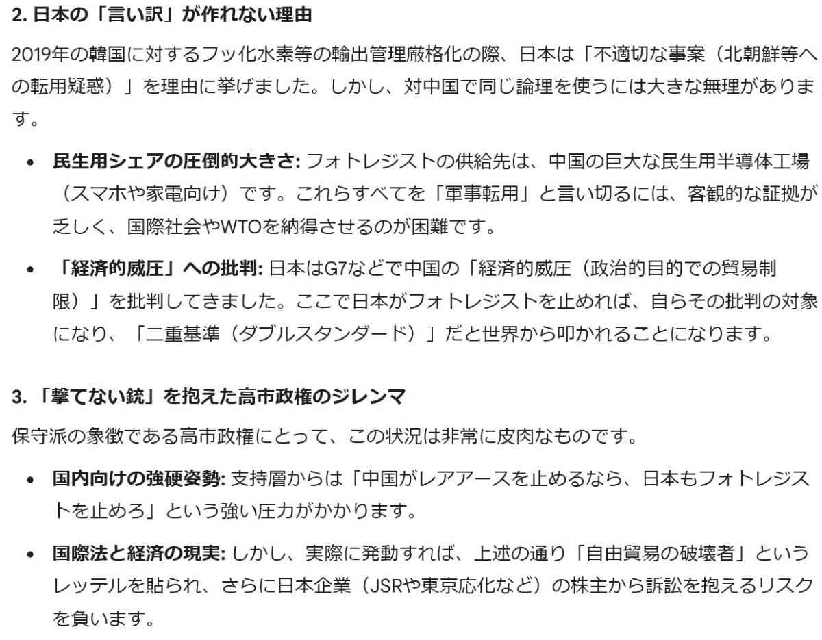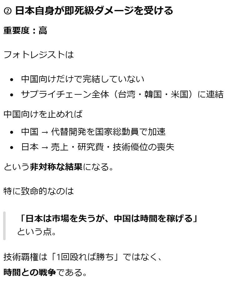 フォトレジストと「全く同じ理屈」で輸出規制できないよ