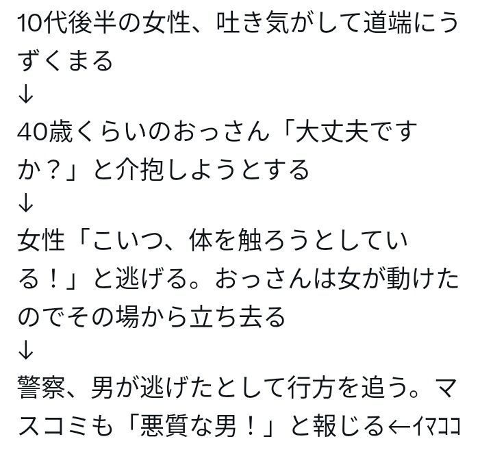 - 女を介抱しようとしてる時点でこのおっさんも犯罪やろ