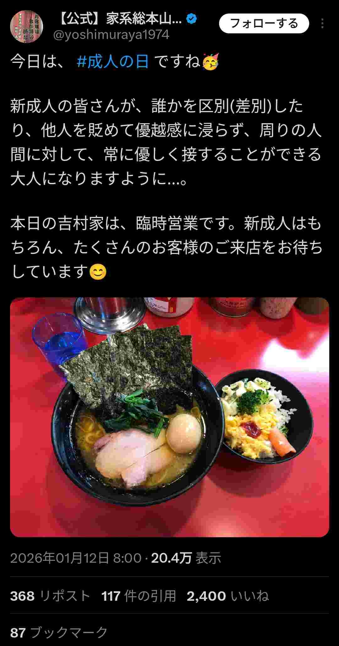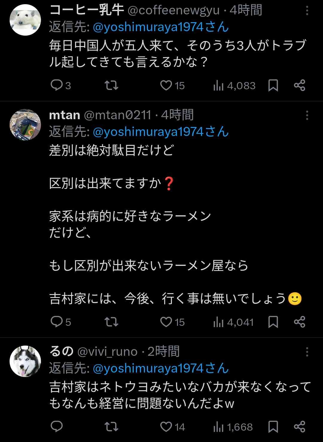 - そもそも吉村家なんて日本一行列ができるラーメン屋まであるから中国人含めて外国人客がめちゃくちゃ多いに決まってるだろ
