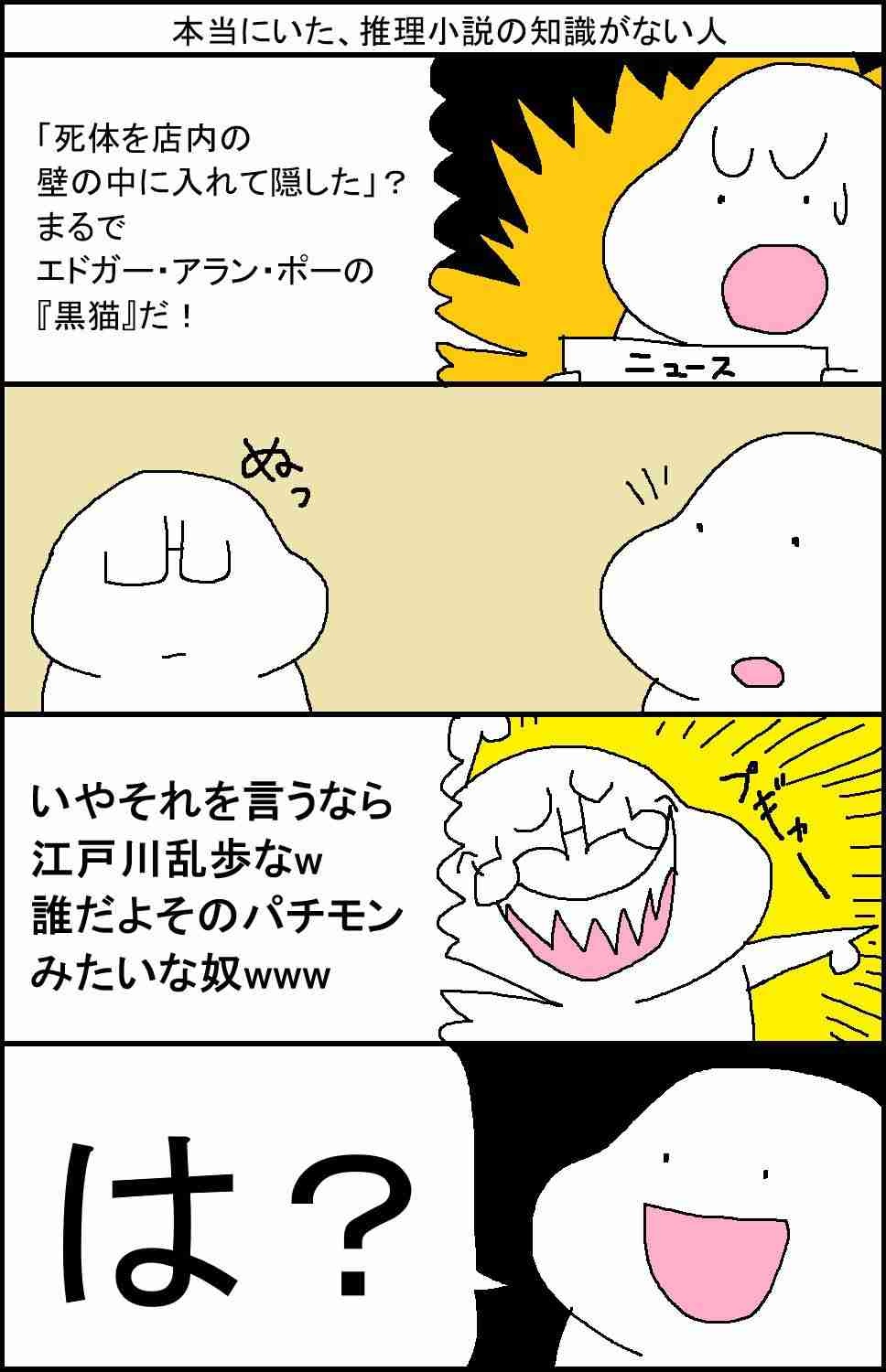 - ポーの黒猫は推理小説ではないけどまあスルメごときが知ってるわけないわな