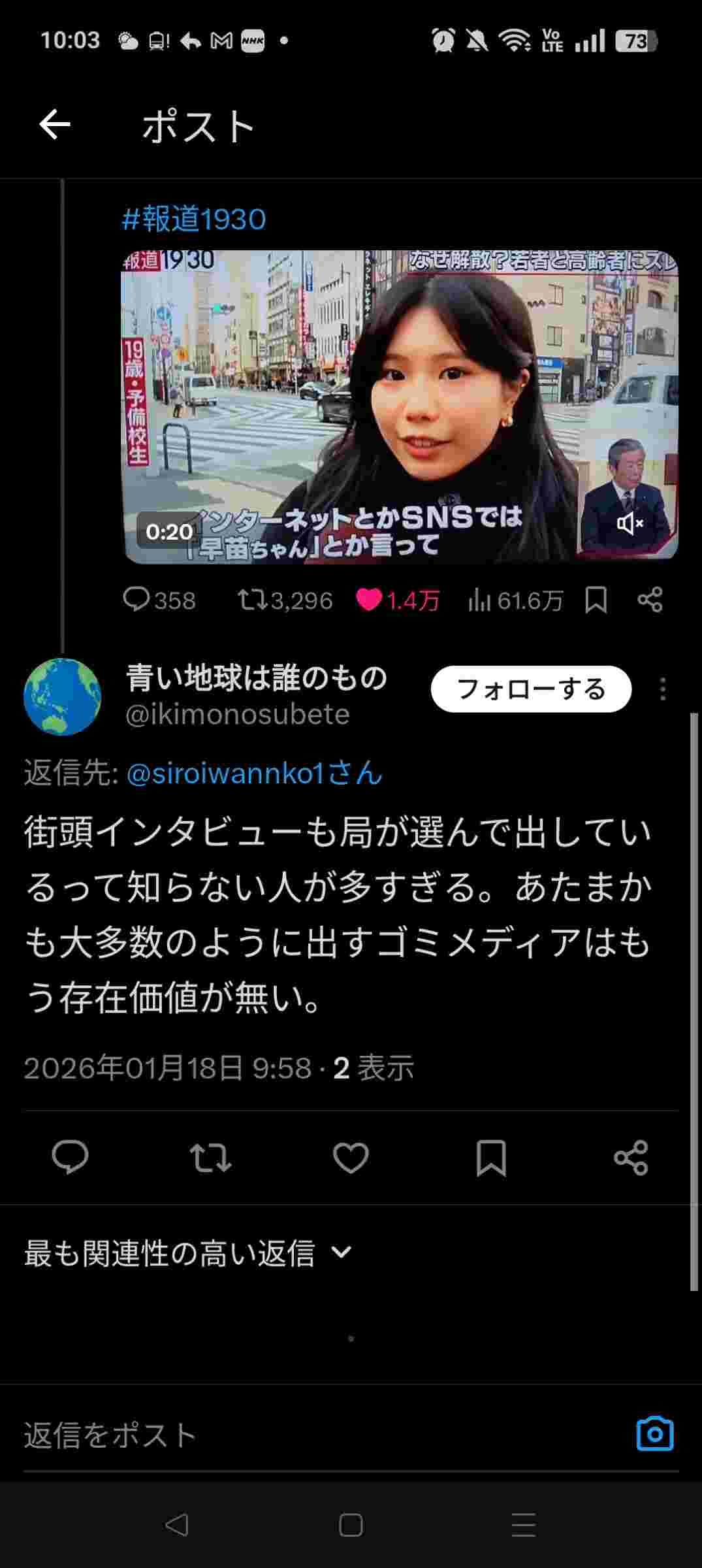 - 最近素人でも粘着されてるしけっこうリスクだよな街頭インタビューて