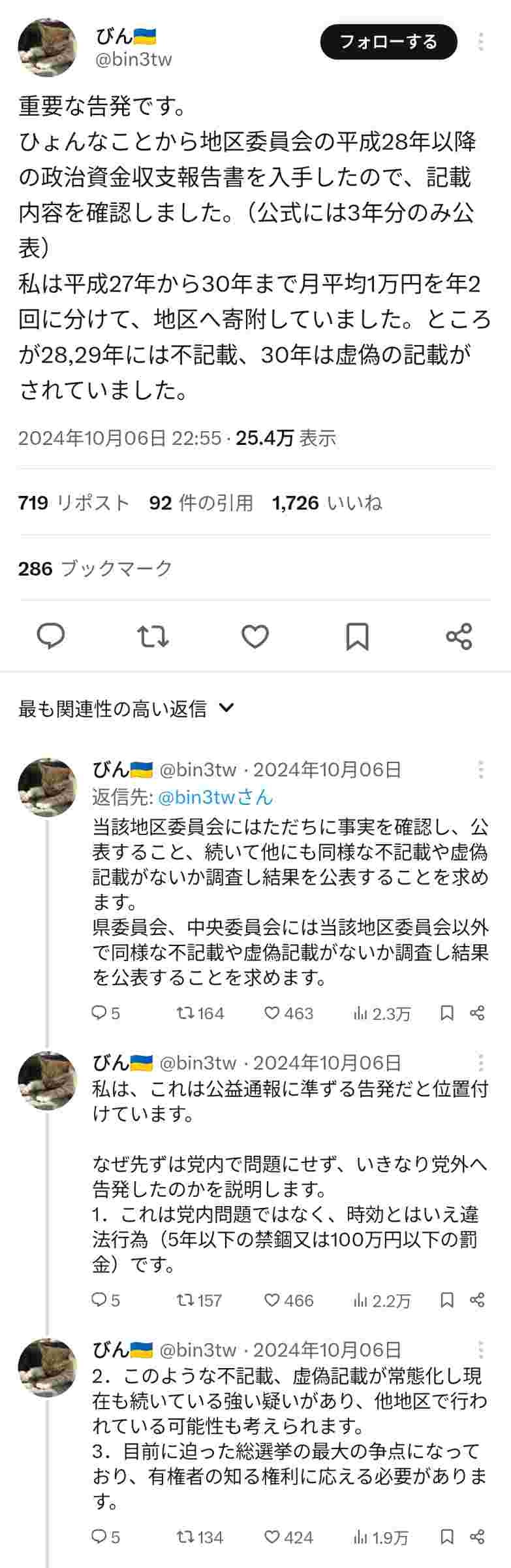 党内で問題にせずいきなり党外へ告発したって本人も書いてるから