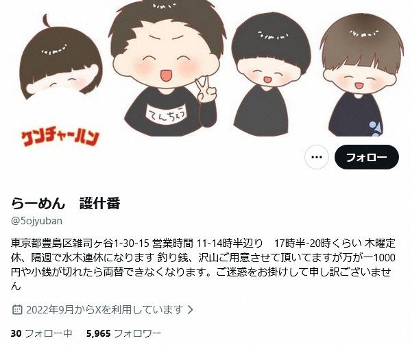 東京都豊島区にある「らーめん 護什番」が17日に公式Xを更新。