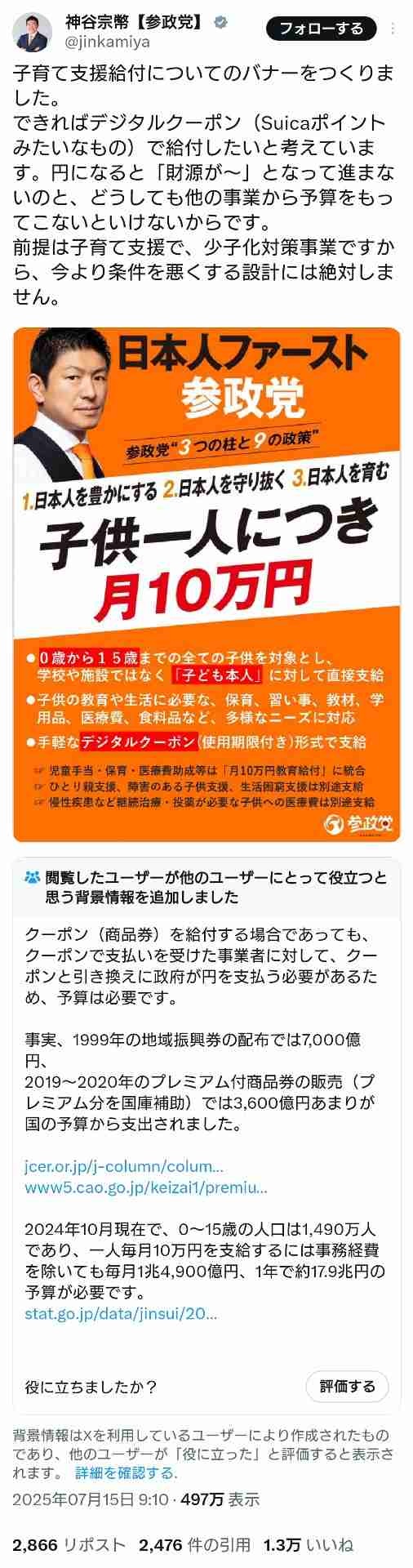 - 参政党と自民党のサポーターズって違うんやなって