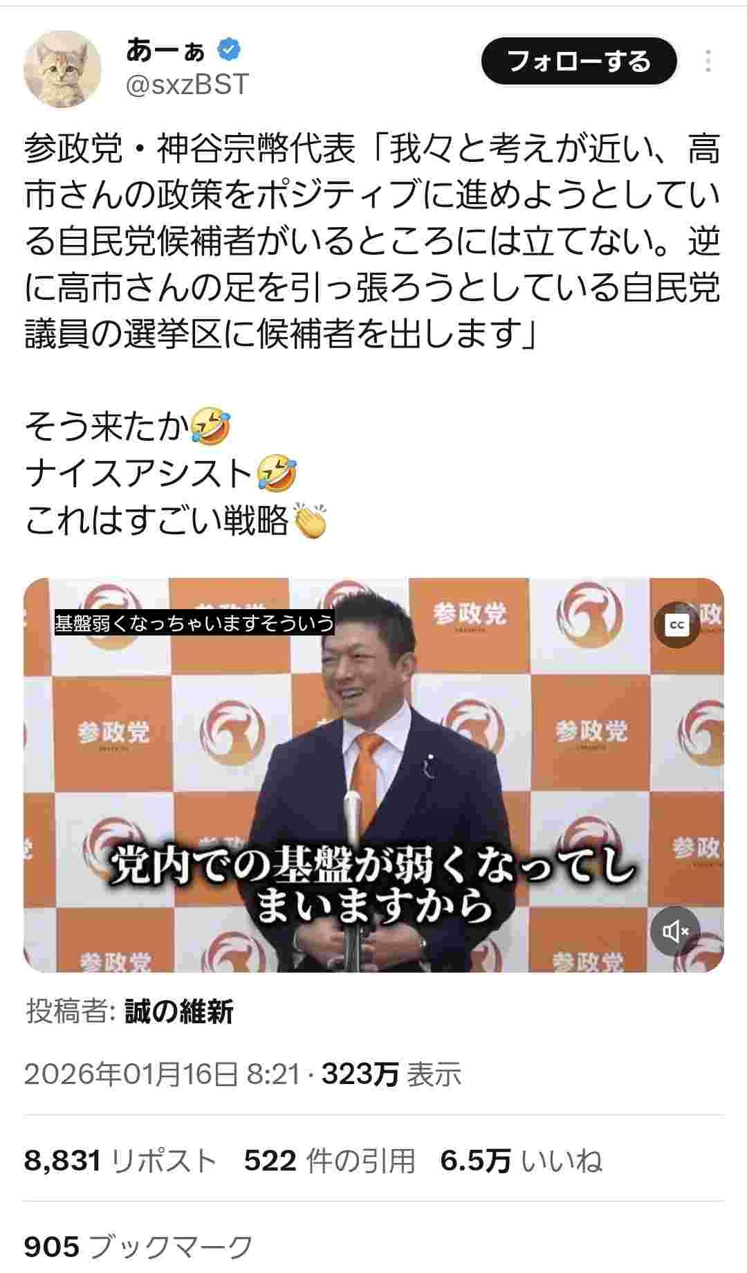 支持者をよく理解してる - 178 : 2026/01/19(月) 19:59:10.771 ID:5D9.xNU3N